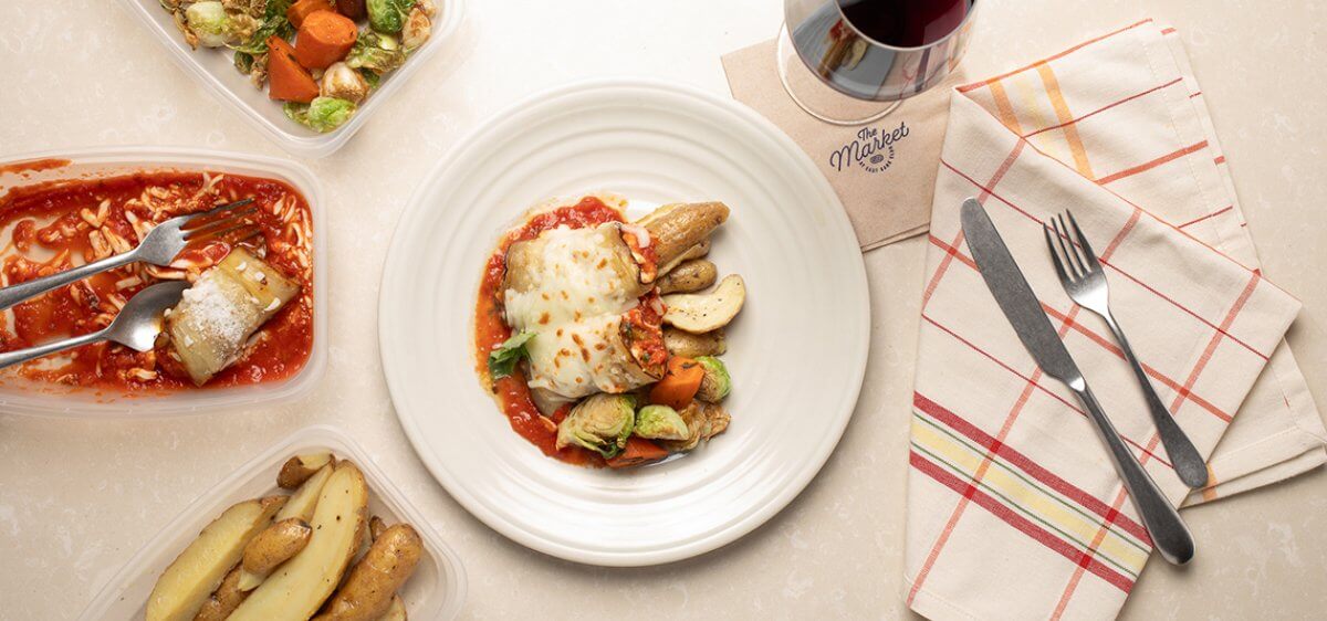 If you're planning to entertain at home this year, the Market has you covered! With homemade dishes including traditional stuffing, candied sweet potatoes, haricots verts and baby carrots, three-cheese mac and cheese, roasted broccolini, and mashed potatoes, we'll cook it all - including a fresh, never-frozen, free-range turkey.